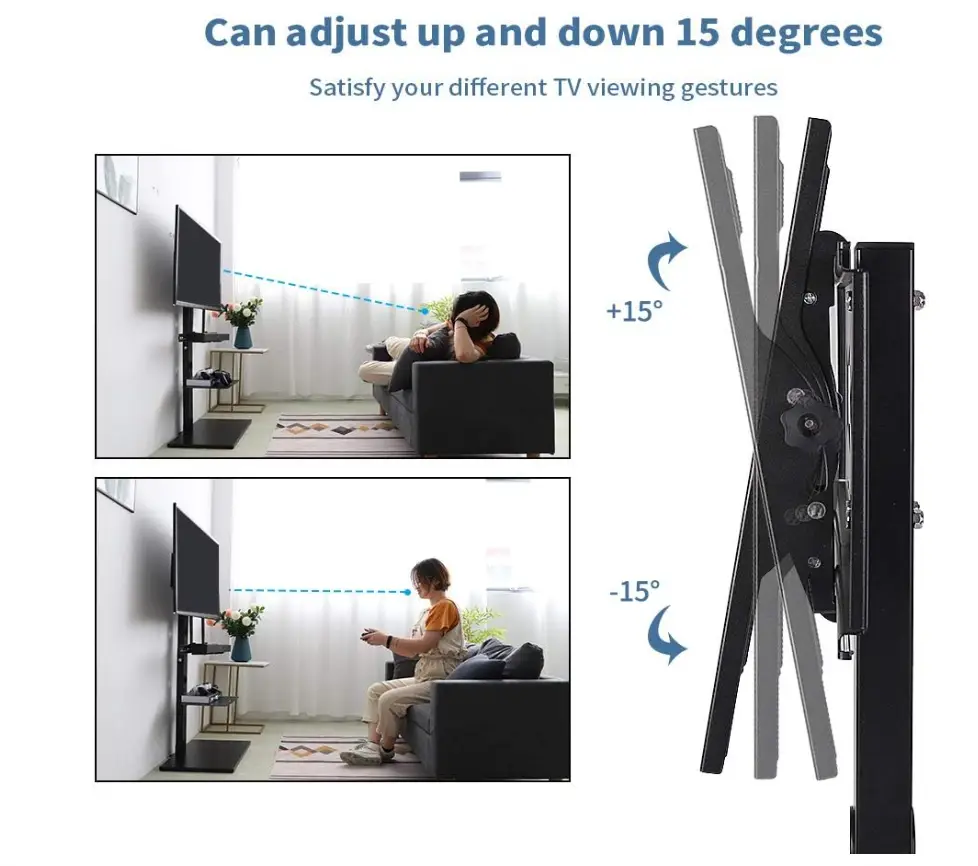 • Adjustable: Position your television to your exact specifications! Adjustment Angle: Tilt -15~~ +15~, and the TV panel can be adjusted up and down for comfortable viewing.